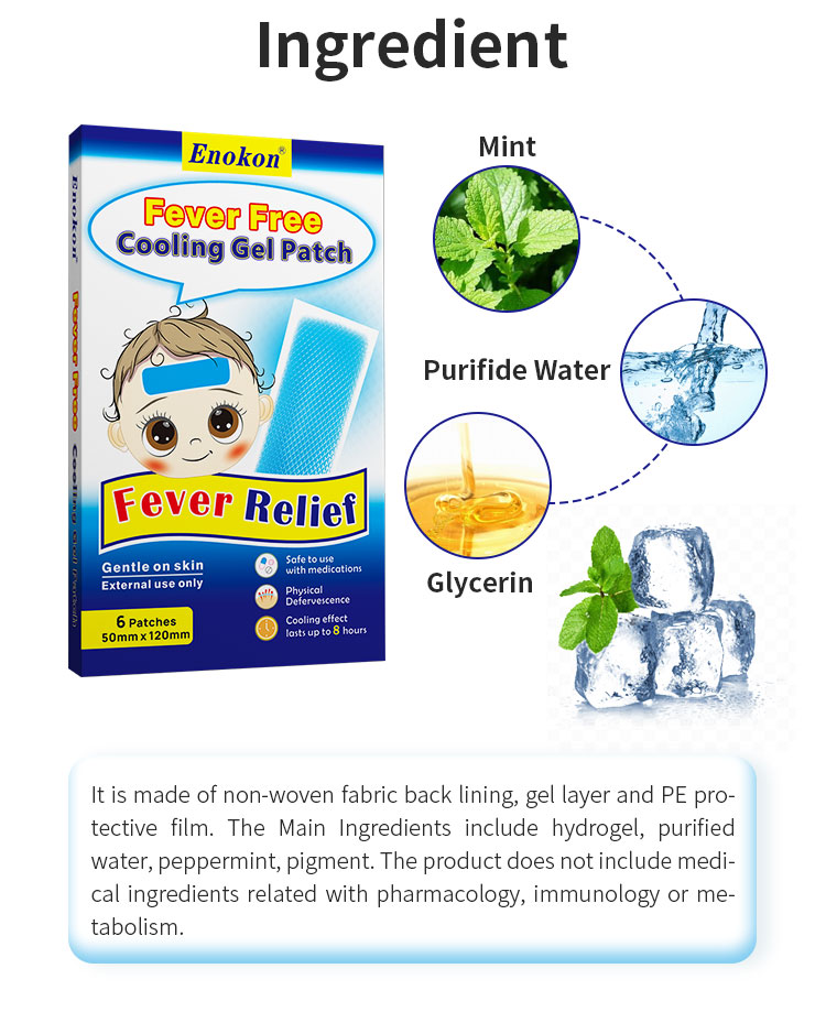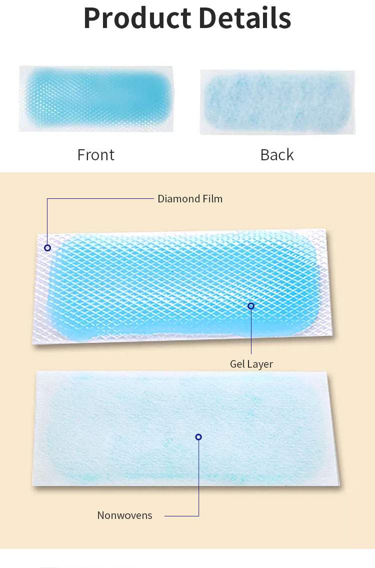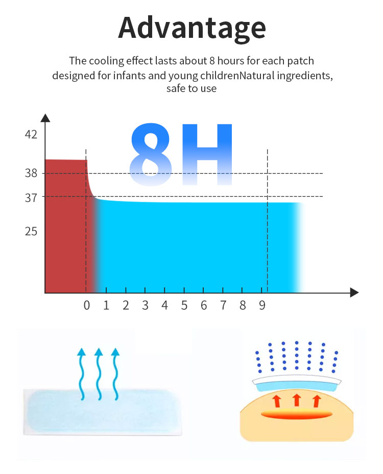 - Effetto rinfrescante prolungato e costante: I cerotti sono progettati per fornire un effetto rinfrescante prolungato, che può durare fino a 10 ore, superando i metodi tradizionali come gli impacchi umidi.Questo risultato è ottenuto grazie a principi come la tecnologia a cambiamento di fase e il rilascio controllato.